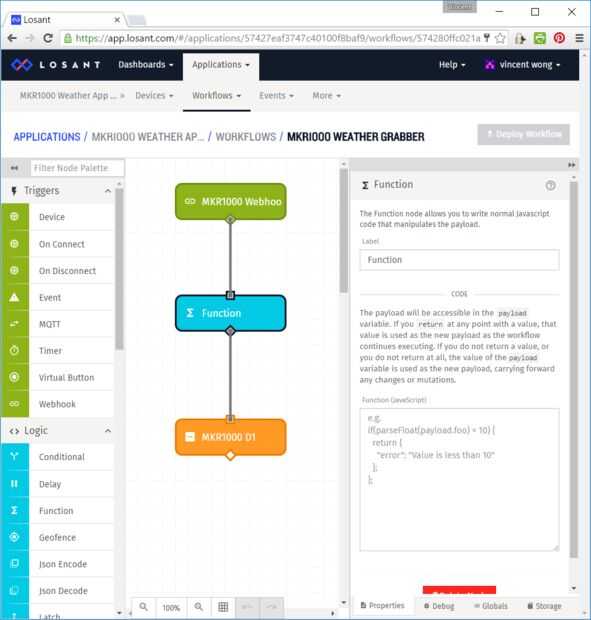 Tiempo utilizando MKR1000 y Losant (13 / 19 paso)