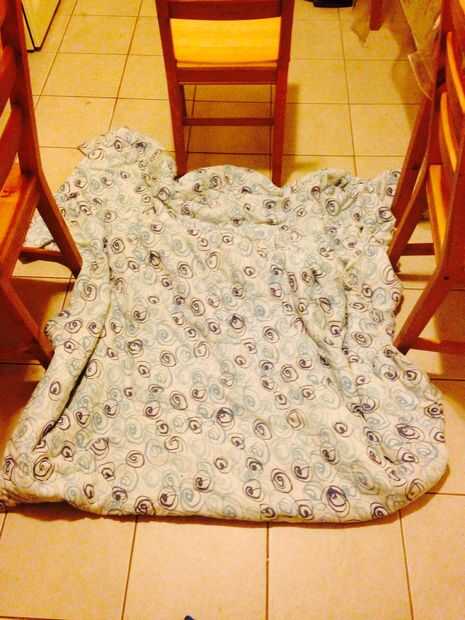 Ponga una manta de tamaño medio en el piso como en la imagen