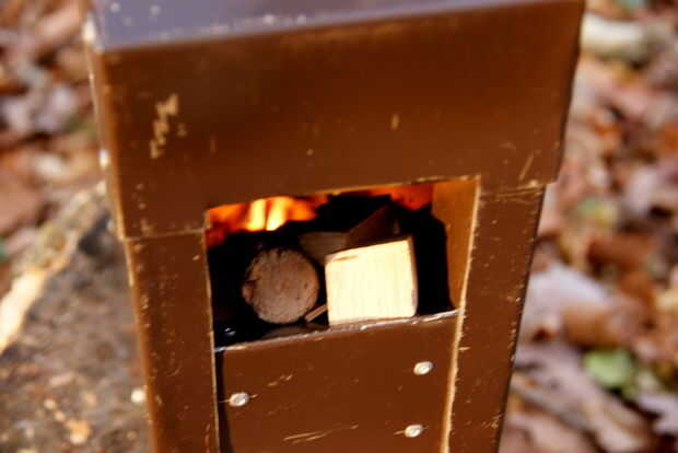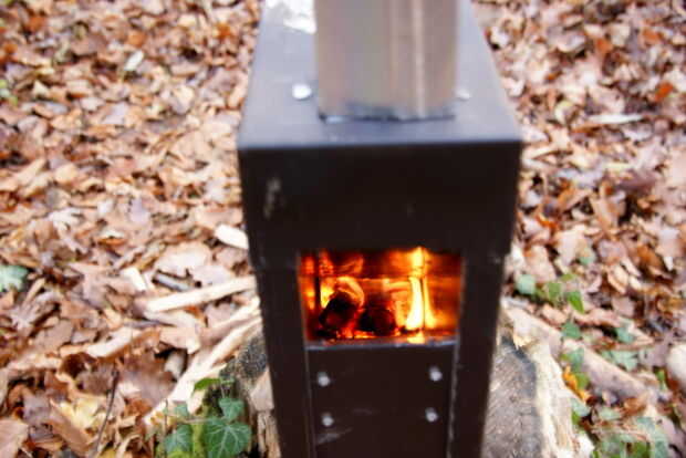 Por lo tanto, otoño, fuera de temperatura unos 12 C he probado cohete estufa con chimenea cuadrada. Todo era tan predecible. Fue fácil para recoger pequeños madera diámetro máximo 3 cm y queman correctamente. Estufa era caliente y sin humo. Perfecto.