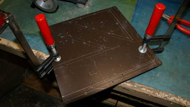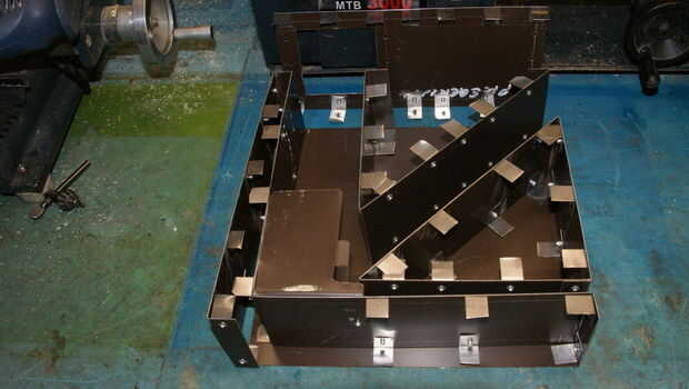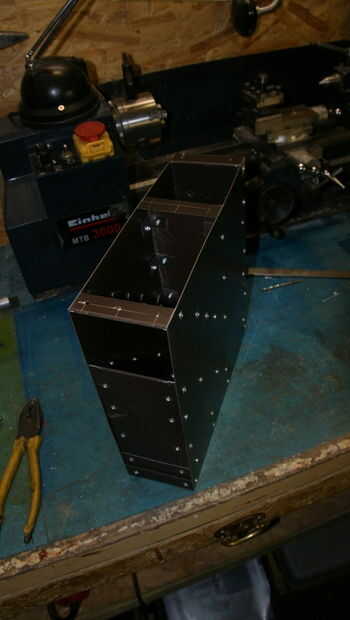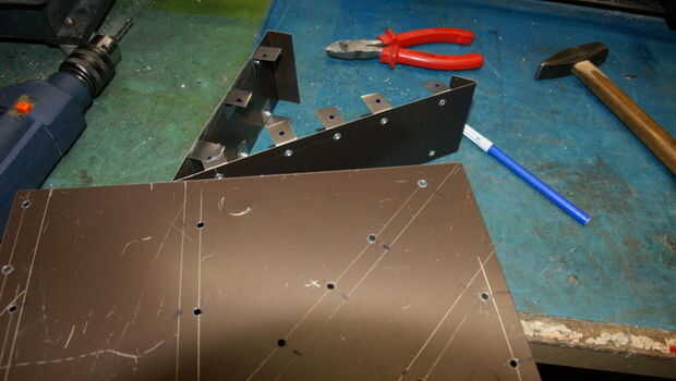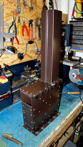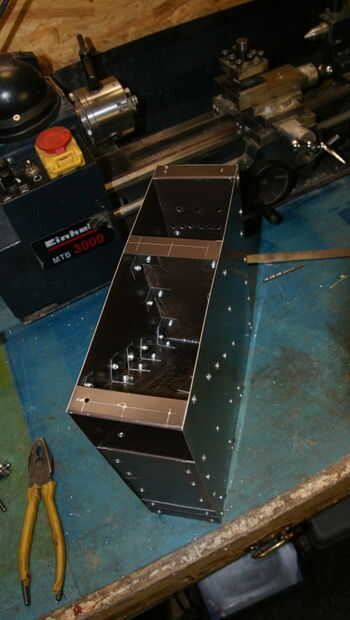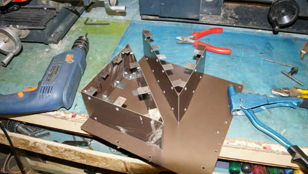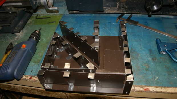 Todas las piezas están equipadas con pc de "L" y con remaches de popup de 3mm conectados a ambos lados. Placa inferior y la parte posterior son 2 cm más ancho dentro de lados, para lograr distancia y baja temperatura-seguridad paso para evitar posible accidentalmente entra en contacto con saco de dormir u otra tela camping con interiores calientes. Por lo tanto tengo una estufa más pesada.