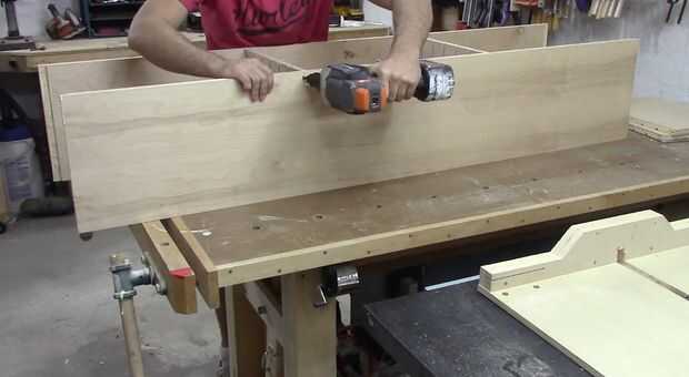 Hice a mis cajones 2" de profundidad. Esto me permitió obtener 6 cajones por sección. Corté 6 dado 1/4" por 1/4" en todas las canalizaciones verticales (ambos lados de las dos medias canales). Cortan 4 mortajas equidistantes en la pieza superior e inferior a las canalizaciones verticales. Luego pegado y atornillado todos juntos asegurándose estaba cuadrado antes de colocar el panel posterior.
