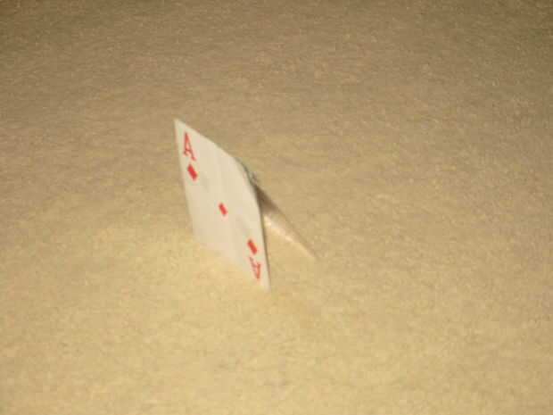 Doblar una tarjeta de crédito en un soporte de teléfono usando un encendedor
