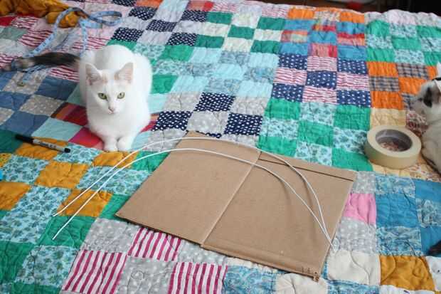 Forma los ganchos que les como el de arriba - intentan hacerlas suave y bastante uniforme. Desea que dos curvas agraciadas que Irán de esquina a esquina de la pieza de cartón.