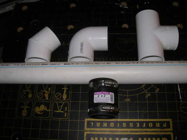 utilizar tubo de PVC. Encontré 2" PVC conectado bien y se puede encontrar 90 y codos de 45 grados,"Ts"y tapones.