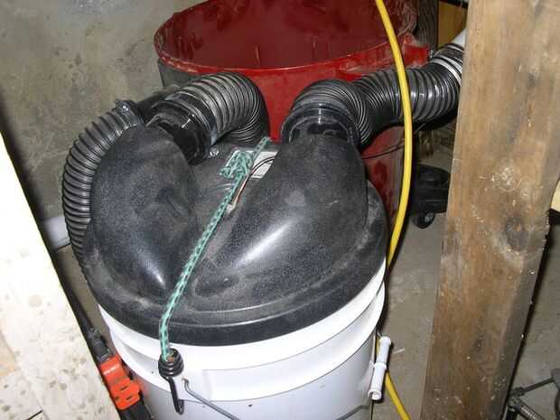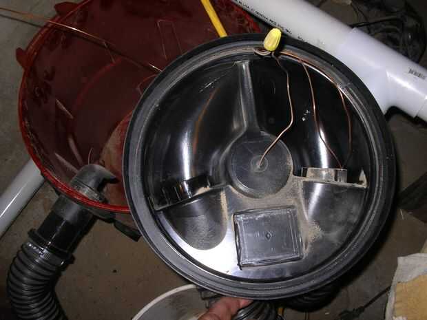 El sello donde el ciclón se encuentra en el cubo de los escapes, así que puse una tira de burletes negros que es adhesiva por un lado por parte del ciclón que se encuentra en el cubo. Eso creó un buen sello y conseguí un buen vacío. El ciclón que compré tiene dos puertos abiertos en la parte superior y si desea conectar una manguera que sugiero conseguir algunos extremos de la manguera. Tiene una entrada y una salida por lo que necesita uno para cada uno. El vacío tiene que conectarse desde el sistema de colección de polvo del ciclón, el ciclón, en el puerto de entrada de la "aspiradora de taller". El ciclón se mantiene hasta el cubo por una cuerda del amortiguador auxiliar.