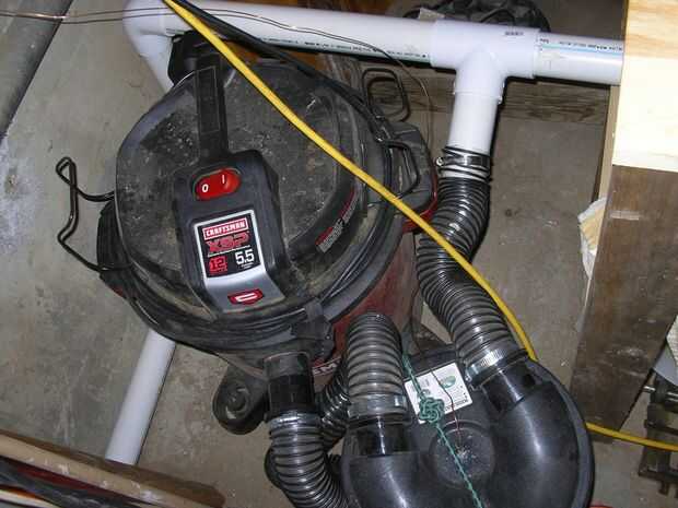 Para conectar entre el PVC y las piezas de colección de polvo de Woodcraft o Grizzly, encontré en la tienda de hardware, conexiones de "tubería rápido". Negro, goma y vienen con tubería pinzas ya instaladas. El orificio para polvo de mi lijadora de banco "OD" es 1 ¾" así que encontré un reductor ese ajuste del puerto a la puerta de explosión. Puse una "Y" en la línea de PVC y utilizar manguera flexible desde la puerta de explosión a la "Y". La manguera se ajusta en ambos extremos con las abrazaderas de manguera.