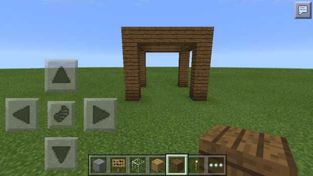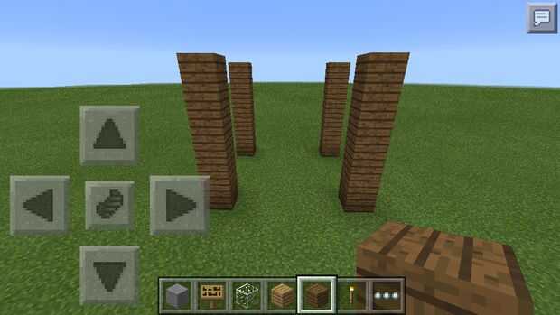 (Usted puede utilizar cualquier tipo de tablones). Hacer un pilar alto cinco bloque. Tres más, cada uno de bloques alejados uno del otro (como se muestra arriba) y luego conecte (también ilustrado).