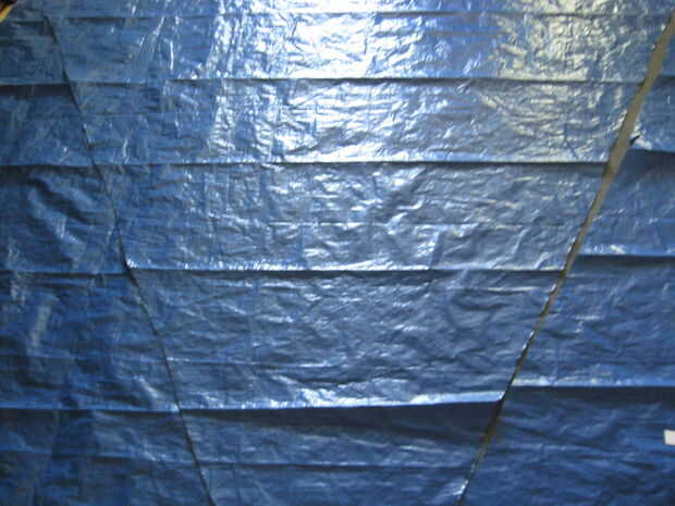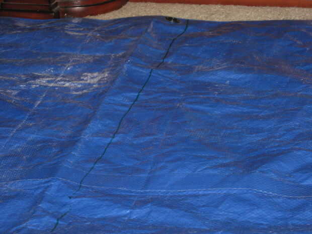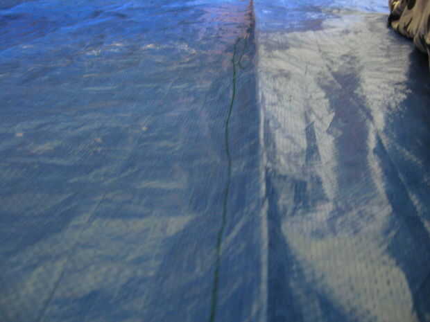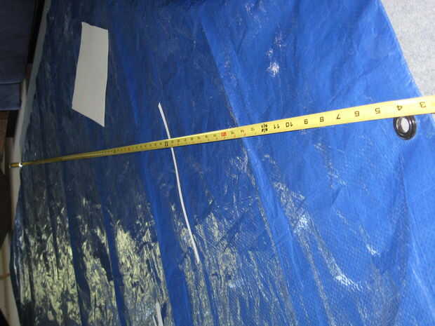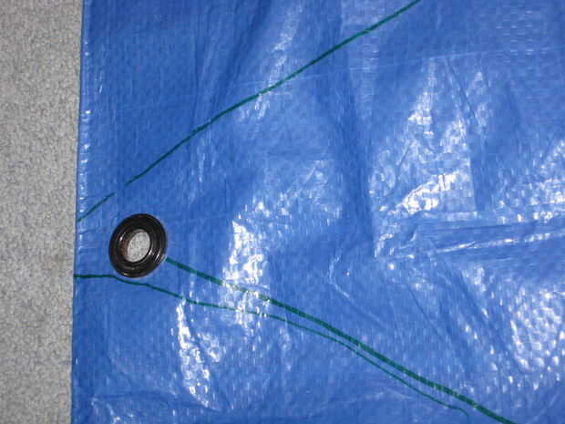 Lo siguiente que haces es cortar las líneas con las tijeras. Asegurarse de que se corta en el exterior de los anillos en vez del interior y que deje algo de la lona alrededor de los ojales.