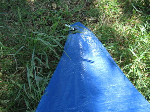 Primer lugar colóquela plana y poner una clavija de la tienda en la parte superior de la lona. Luego tomar el poste del senderismo y saque a 3' y tomar la tapa del extremo. Puñalada final en el suelo [si no puedes debido al terreno está bien]. Coloque el poste de senderismo bajo la carpa y levántela. PEG en los otros dos lados. Para colocar el guyline até un lazo de dos nudos de rizo que se desliza así que apretado hacia abajo en la parte superior el senderismo poste [las obras de lazo como una trampa o lazo]. Poner el lazo sobre el poste de senderismo y apriétela y alimentación a través de las manos hacia abajo a la tierra aproximadamente 4' del poste de senderismo. ATA otro doblando el guyline y empatando un nudo. Coge la otra clavija de la tienda y poner en el suelo. Engarce la guyline sobre la clavija. Sugiero que libra las estacas en el suelo.
