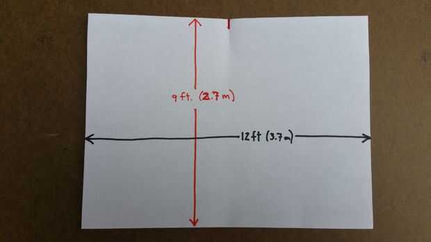 El siguiente paso es marcar la ubicación de la tienda lazos a lo largo de los cuatro lados y las esquinas. Para ilustrar esto hice un modelo de papel, a escala, de la tienda de lona, como se ve en la foto 1, para mostrar los siguientes pasos.