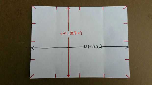 Por último, haga una marca en cada una de las cuatro esquinas. La lona debe parecerse ahora el modelo de papel de la foto 8.