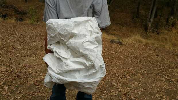 Una vez que la lámina de Tyvek es suficientemente arrugada la carpa de lona de Tyvek se hace!