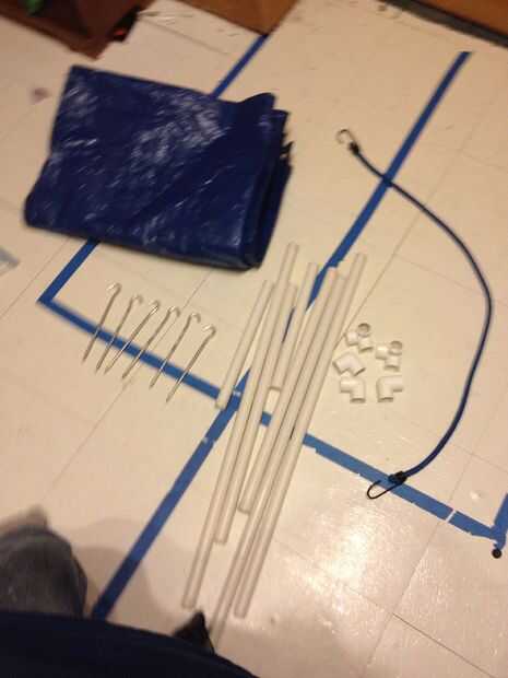 esta es mi tienda de lona de 1 persona que tiene una puerta opcional. Es pequeño y ligero cuando está plegada. Es barato y fácil de hacer y no toma mucho tiempo.Lo que usted necesita:Lona de 8'x 10'4 estacas1 poste de senderismoUn tipo de guyline [us