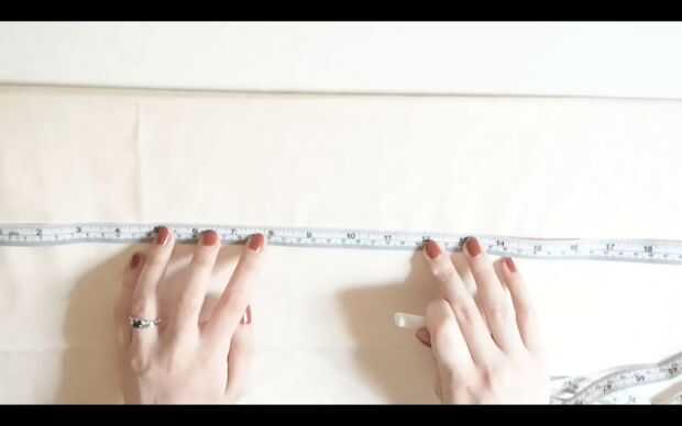 Después de tomé de tela beige y preparados la franja usando cinta métrica y tiza para hacer marcas.