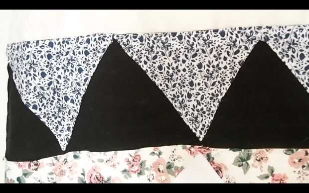 Y aquí se puede ver la forma en fui uniéndolas al vestido (ambos a la vez para que puedas ver si todo está en el mismo nivel y dobla los bordes así que son bastante rectas y aseado).