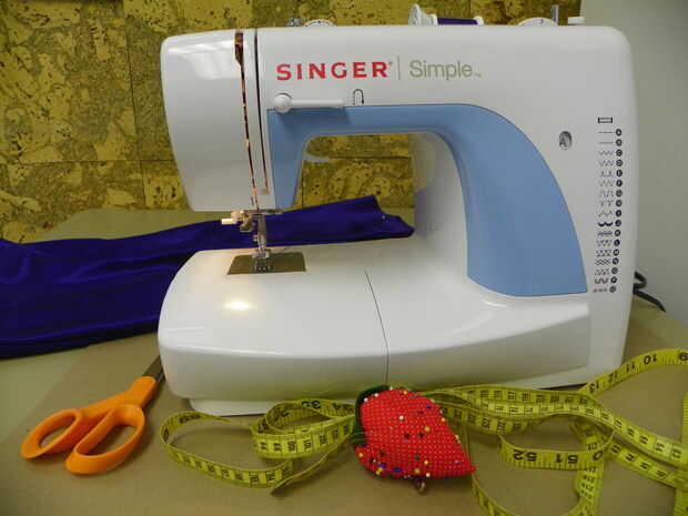Un viejo vestido largo, la máquina de coser, hilo, alfileres rectos, medición de cinta, descosedor y tijeras. Puede que necesite comprar una cremallera.