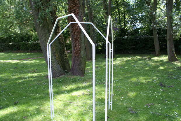 Ahora haga lo mismo con el tercer arco: fijar las bisagras del primer arco esta tercer arco. Ahora debe haber conectado los tres arcos entre sí y la construcción debe ser capaz de estar solo.
