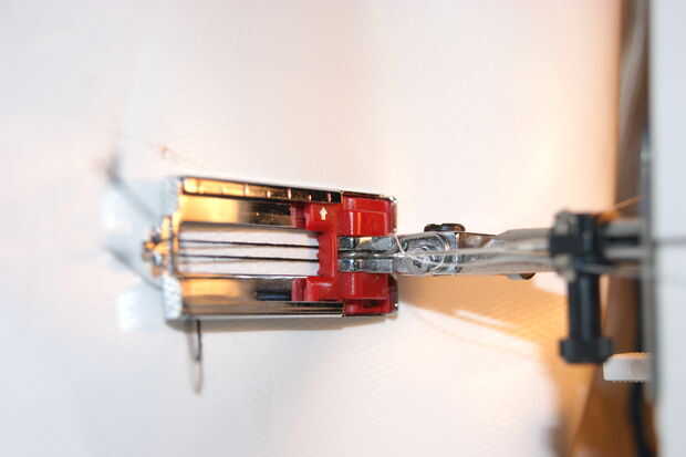 1. Coloque el pie de agujero de botón en su máquina de coser