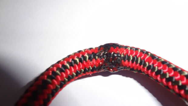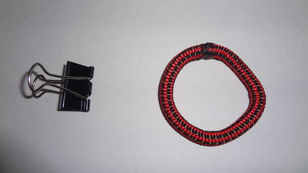 Para hacer el anillo de una cuerda gruesa, puede pedir al personal de la tienda que comprarlo, para que pueda derretir y ponerlo junto con su caliente derretir-cortador de allí. Tienen uno para derretir la cuerda, de lo contrario puede usar un encendedor. Trabajar rápido!