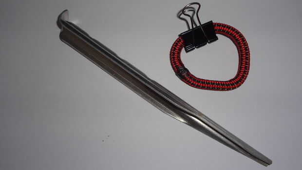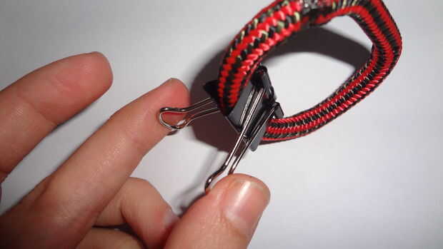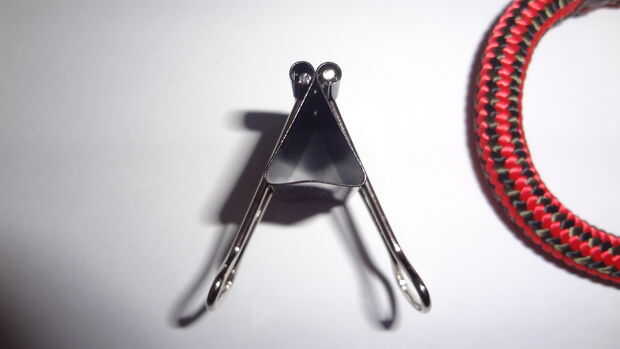 La otra parte es una pinza que se pueden comprar en todas partes, pero también se puede utilizar otra pinza. He elegido la mía, porque pude conseguirlos en la tienda de papel fácil. También tienen una fuerza máxima y se abren ellos mismos. Fue útil para mí como yo quería que abren por sí mismos, a no hacer orificios en la tela, me protege del agua.