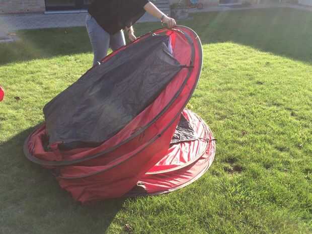 Daarna plooi je het ene deel van de tienda en zodat het op het overige deel interfaz te liggen. Je bekomt een ovaal vlak.