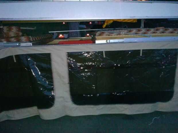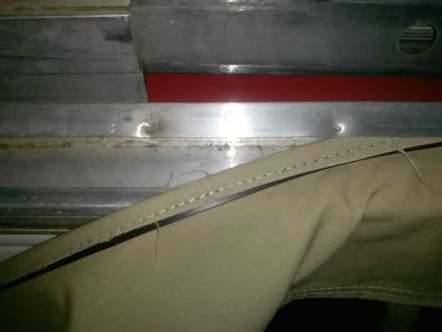 Compró nuevo lienzo también de RVworkshop.com. Envían muy rápido y se ve increíble. El tema que me topé con la instalación de los rieles superiores es que no tiene ni idea donde estaba el viejo lugar poner para arriba. Los rieles no van