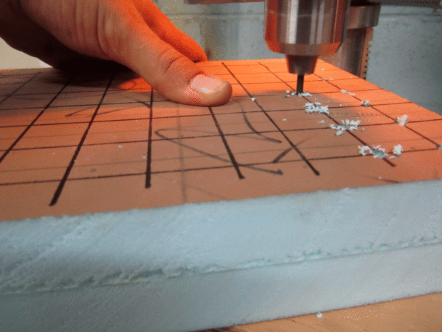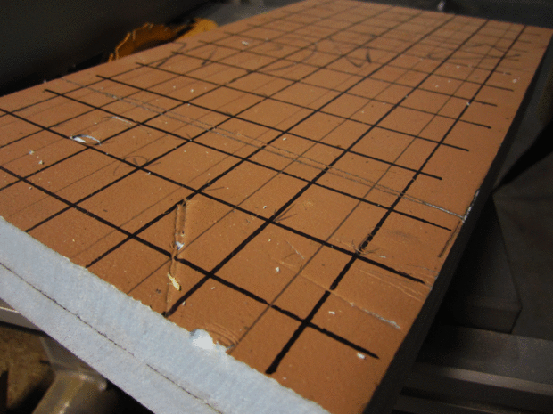 Usando una broca de 1/8 perforado los agujeros donde la red cruza líneas.