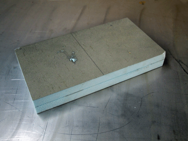 Usé pegamento de espuma PL300 que pegan dos trozos de espuma aislante denso. Cuando estaban secas corte el bloque terminado en un pequeño rectángulo (usted puede elegir un tamaño adecuado para su espacio - mina era aproximadamente 7 "x 16").