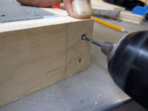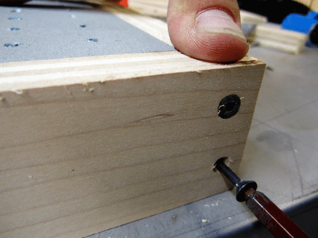 Alinearon las tiras donde conectar cada uno al otro y agujeros en corto tiras de contrachapado; Esto es para mantener de partir cuando atornille más adelante.