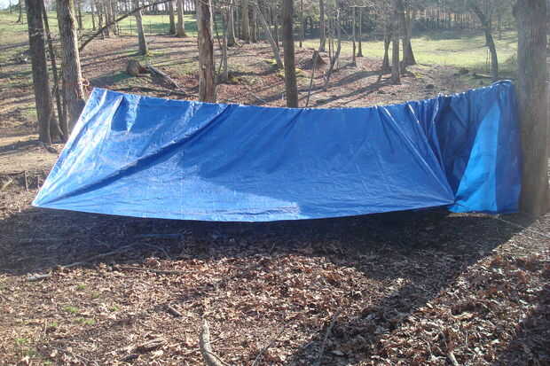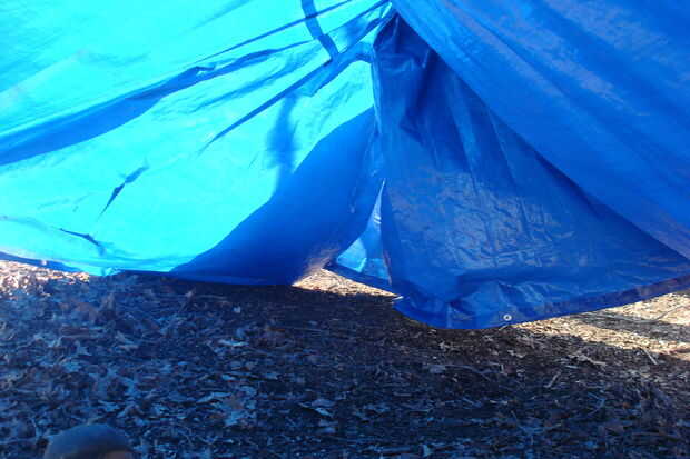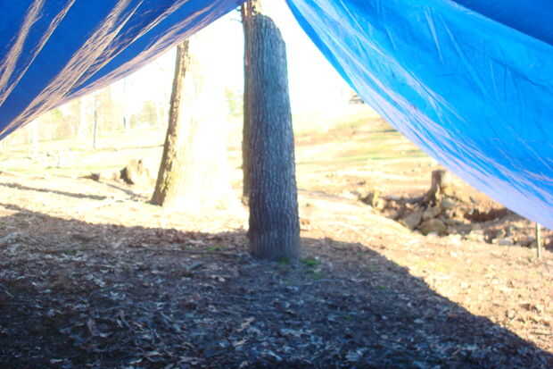 esta es mi tienda de lona de 1 persona que tiene una puerta opcional. Es pequeño y ligero cuando está plegada. Es barato y fácil de hacer y no toma mucho tiempo.Lo que usted necesita:Lona de 8'x 10'4 estacas1 poste de senderismoUn tipo de guyline [us