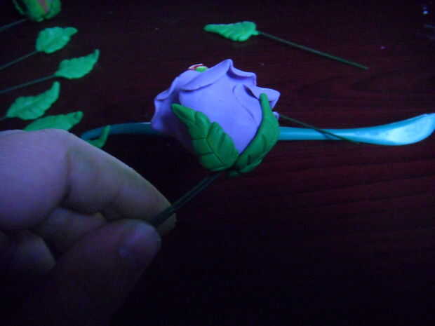 Añadir las hojas hacia el exterior de la 'Rosa'.