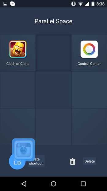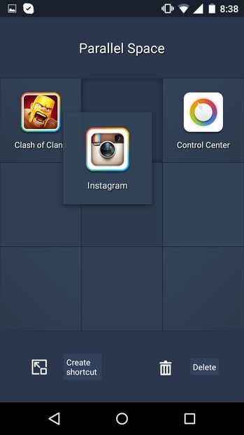 Ir a app espacio paralelo entonces mantenga y arrastre la aplicación a "Crear acceso directo".