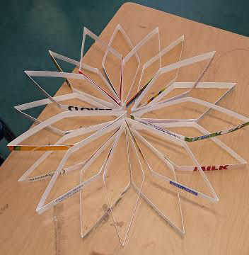 Cartones de leche pueden ser un notable material ocupa vanamente. Flexible, pero rígido, sus fuertes pliegues en las esquinas permiten la retención de formas rectangulares como cuadrados y diamantes. En esta actividad ocupa vanamente, los estudiantes usarán segmentos de 1/2 pulgada de cartones de leche para construir creaciones que exploran la simetría y el trabajo en equipo.