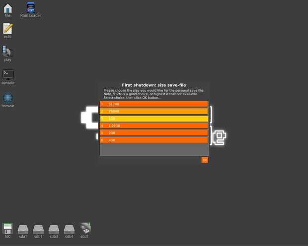 # en el primer apagado puedes guardar todas tu preferencias archivos, las roms descargadas quedaran en tu pendrive para el siguiente booteo