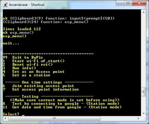Para cargar un scrip: copia la URL verde mediante la selección y la copia con CTRL + C, en el editor (IDE) Menú > Scripts > abrir URL en Clip , este carga el archivo de comandos en el editor, luego volver a utilizar el menú de scripts (Menú > Scripts > BvSerial > enviar los comandos) o más fácil MAYÚS + CTRL + R.