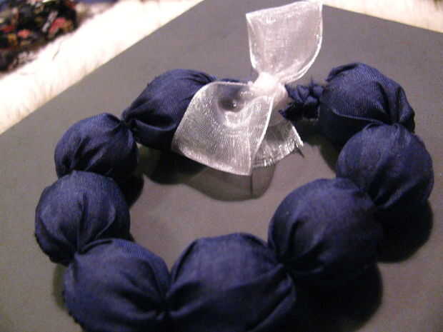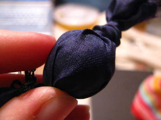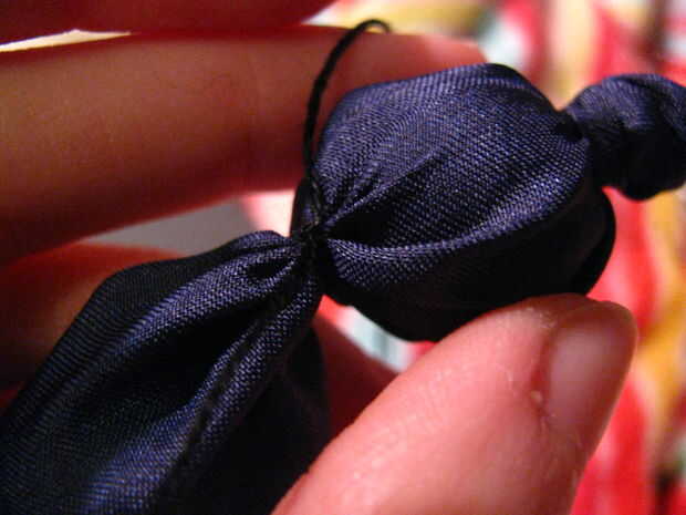 (Se puede, en lugar de nudos con una cuerda, nudo del tejido, pero esto consume más tela y no trabaja con materiales más gruesos)