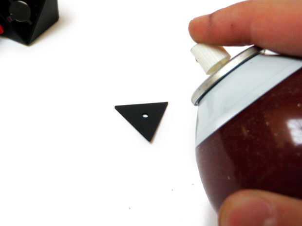 Un lado del triángulo perimétrica corte anterior (ver plantilla abajo) con montaje en aerosol del aerosol.