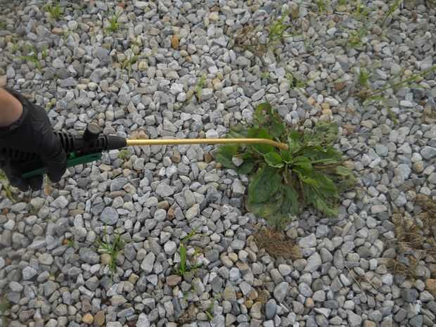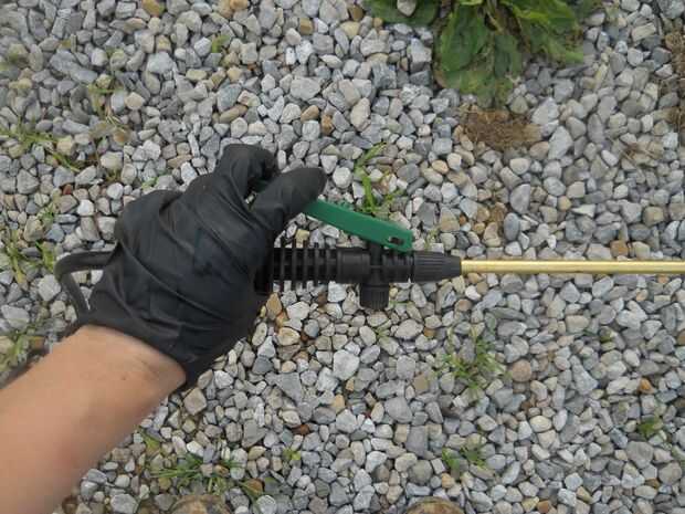 Una vez que ha construido el rociador a presión, use la varita para apuntar las hierbas molestas.