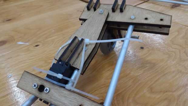 Hice los archivos láser, usando los dibujos que hice y utilizó éstos para cortar los componentes de madera para esta compilación. También tuve que cortar las varillas de aluminio para los tamaños adecuados, 4x600mm y 2x300mm.