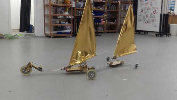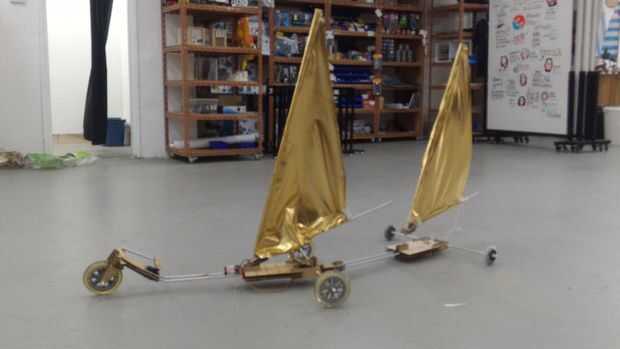 -Queríamos hacer el diseño más plegables y fáciles de transportar. Por lo tanto sustituimos el eje de la rueda de 8mm en la parte posterior con una varilla de aluminio de diámetro 10mm que se fija en su lugar. Esto tendría dos barras de aluminio de 8mm con ruedas fijas que podrían deslizarse dentro y fuera de esta barra central. Esto permitiría sacar las ruedas hacia fuera cuando usted desea viajar con el landyacht de manera que aunque sería preservar la fuerza del vehículo.