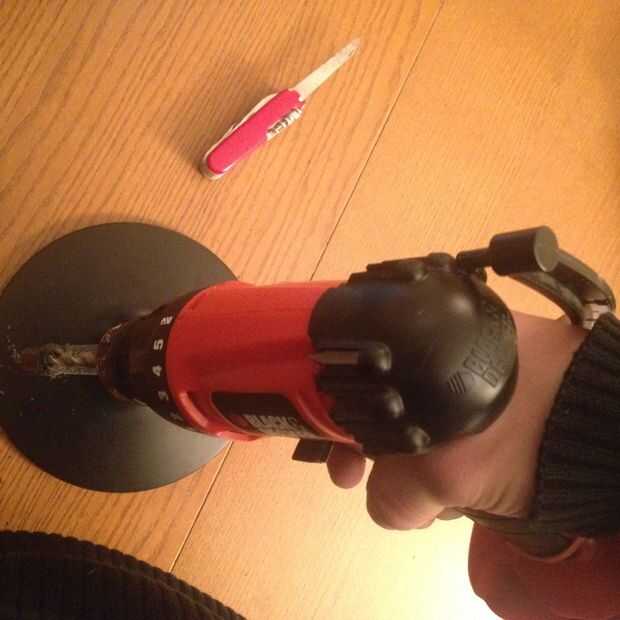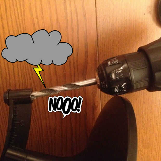 La parte más importante es mantenerse en eje. No perfore si te obligan a estar fuera de eje. Prefieren perforar desde la parte superior doblando ligeramente el brazo del mundo lejos, realmente puede guiar desde la parte superior del brazo está precisamente en el eje de rotación.