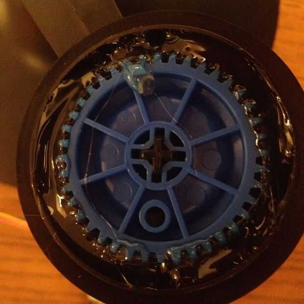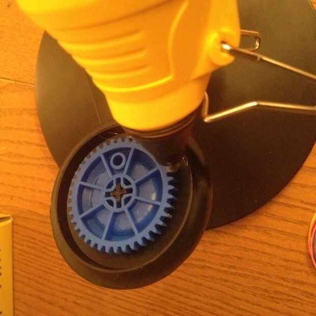 En ese momento, usted puede pegar la rueda de la placa. He utilizado pegamento caliente, en caso de que quisiera tomar la rueda vuelve a salir, pero algunas gotas de epoxi lo haría.