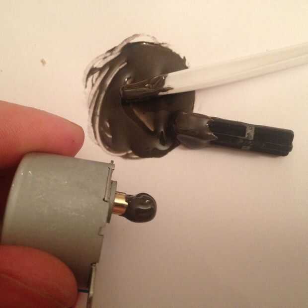 - Sumerja la punta del eje del motor en el epóxico. Casi no debe gotear en todos. Evitar que el pegamento llegue al motor porque si alguno lo hace en los engranajes, sólo puede zanja su motor.