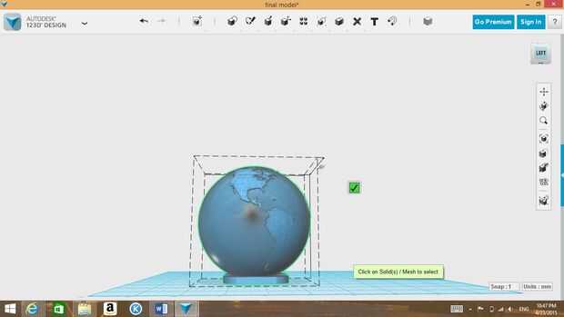 a) haciendo clic en la esfera, una barra de herramientas se mostrará en la parte inferior del programa. Haga clic en el botón "Move".