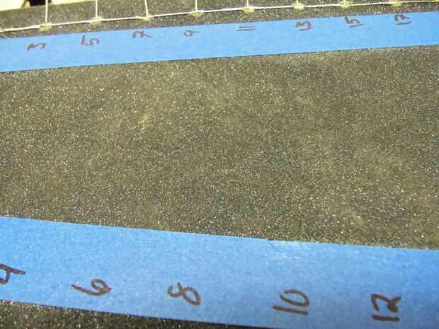 2) ponga la cinta por la parte superior de la placa y marque un lado con números comenzando con 0 y el otro con números impares a partir de 1, dos que comienzan en el extremo de la nariz de tu longboard. Estos serán sus números de pin.