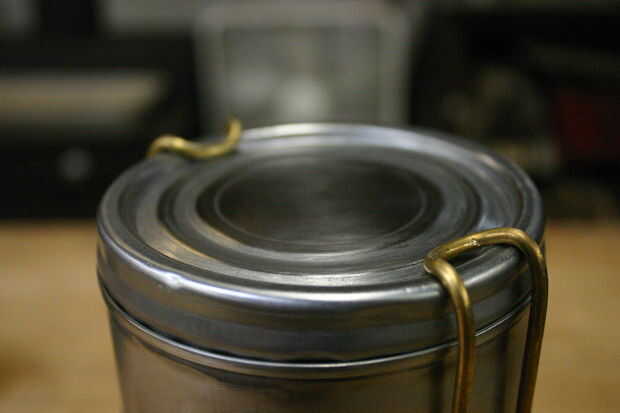 Me gusta mucho la utilidad y el aspecto de estas loncheras, así que quería tratar de hacer mi propia. Atún latas parecía el compartimento perfecto, el único problema era lograr que anidan muy bien. Yo estaba muy impresionado con lo bien trabajado el jig puede formar. Tiró en la parte inferior de la lata y había hecho un anillo uniforme justo por encima de él. Después de eso, las latas encajan muy bien, y todo lo que tenía que hacer era añadir capturas de sorteo y todo... de la arena y comer el atún.