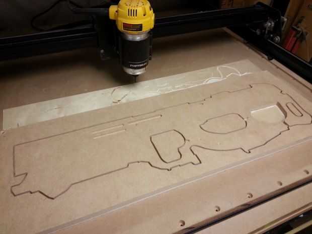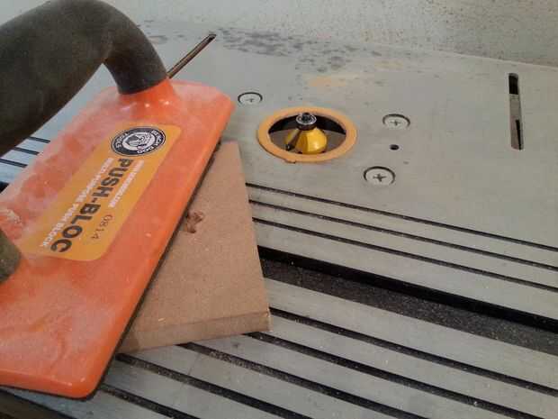Con el 1/8" abajo-espiral del pedacito, corte las dos secciones"interior-exterior"del modelo. Asegúrese de hacer un espejo para que el detalle demuestra para arriba en ambos lados. Con un poco de chaflán en un router, ruta alrededor de la empuñadura y otro tipo de marcado. Seguridad primero, utilice un bloque de empuje! Si no tienes un router, puedes hacerlo con papel de lija pero tardará mucho más tiempo.