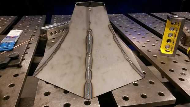 Si tu experiencia es paralelo a mina, y está trabajando con acero, estás a punto de tener una del más sublime experiencias de tu vida de soldadura de TIG. Los paneles de metal de corte chorro de agua son tan precisos y ajuste tan bien juntos que para la mayor parte de la longitud de soldadura se pueden fusionar los bordes sin necesidad de agregar metal de aporte. Iniciar la soldadura en una de las tachuelas y luego simplemente se funden los bordes todo el camino hasta. Durante la mayor parte de la soldadura en este cuerno estaba sonriendo como un idiota bajo mi capó, deleitándose en darse cuenta de que ahora puedo hacer soldar con autógena las costuras que tan suave como para confundirse con el metal simplemente doblada. Ver el Charco, mover la poza permite con como alisar un movimiento posible y tienen una barra de relleno lista para sumergirse en el Charco si se observa un orificio de apertura. Entrar en una posición cómoda de la mano, respiración profunda y disfrútalo.
