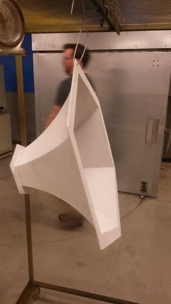 Ahora que tienes una bocina exponencial soldada, tal vez quiera polvo de la capa! Aquí, sólo he puesto una capa base de imprimación de capa de polvo blanco en uno de mis cuernos. La capa superior después de que esto era negro para que el laser de 200mW usar conjuntamente con estos no reflejaría en ellos.