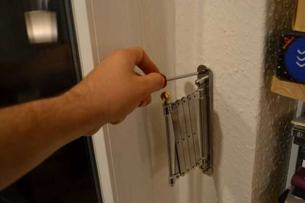 Taladre los orificios, inserte los tacos y atornille bien el brazo de tijera a la pared.